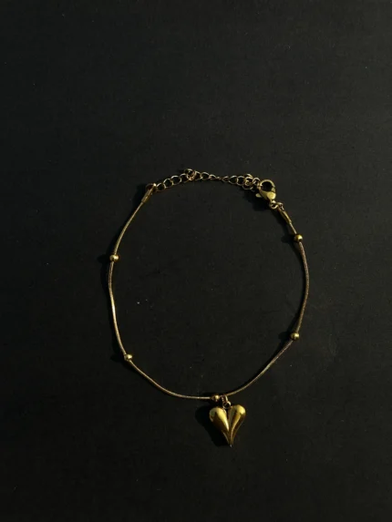 Elegant Gold Heart Charm Bracelet – Minimal Adjustable Chain Anklet for Women