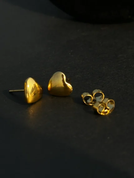 Minimal Gold Heart Stud Earrings – Elegant Polished Love Shape for Women
