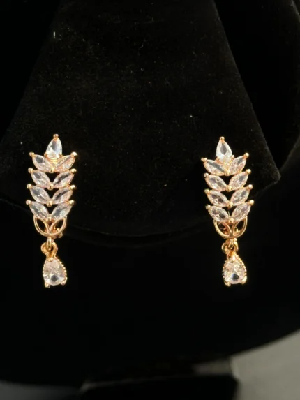 Graceful leaf-inspired earrings featuring a rich green stone drop. Elegant, lightweight, and perfect for both everyday wear and special occasions.